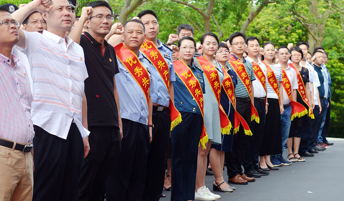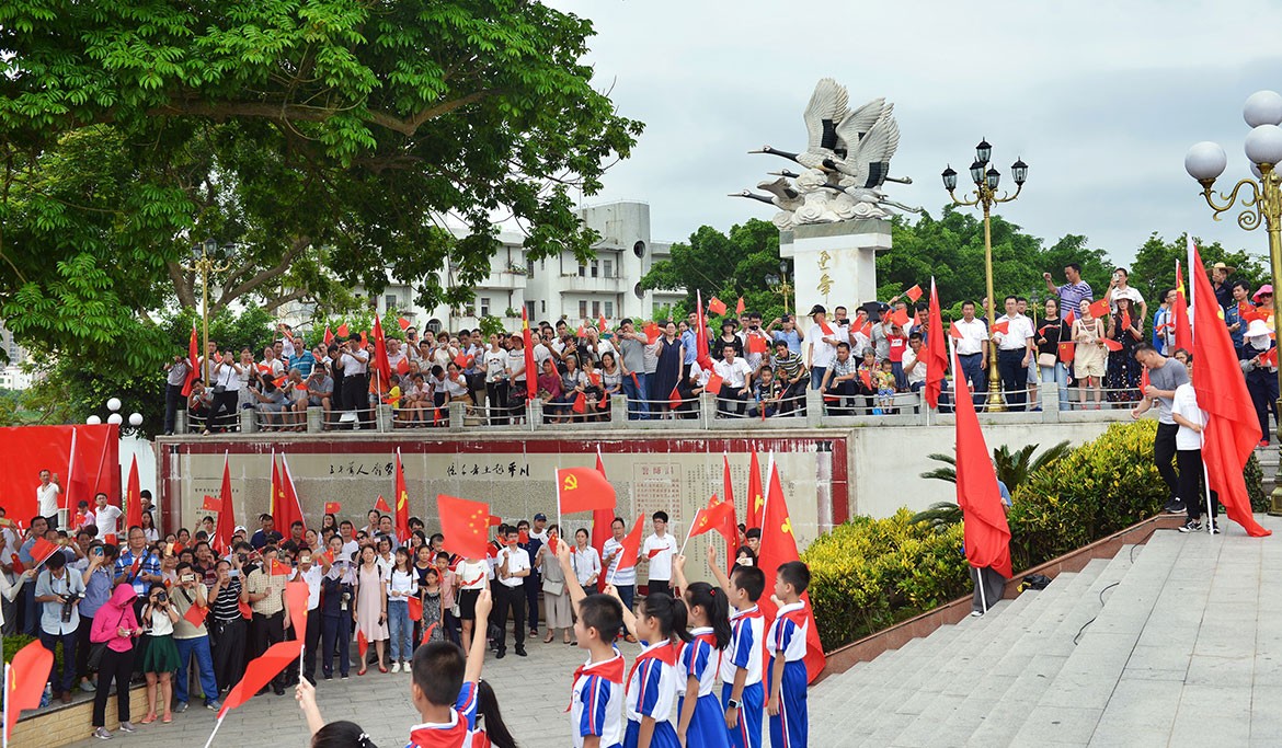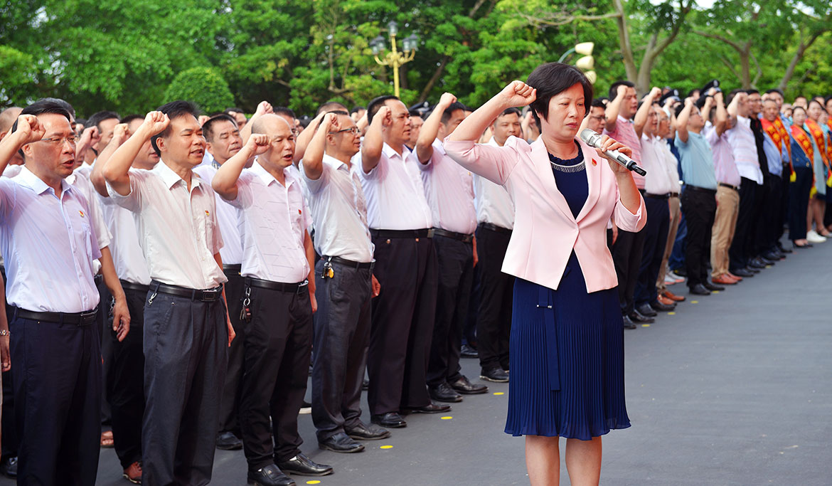 有1200多名黨員參與了重溫入黨誓詞,由湛江市直屬機關工委書記陳瑞群領誓,黨員們精神激昂,宣誓聲音整齊、雄亮、激動。