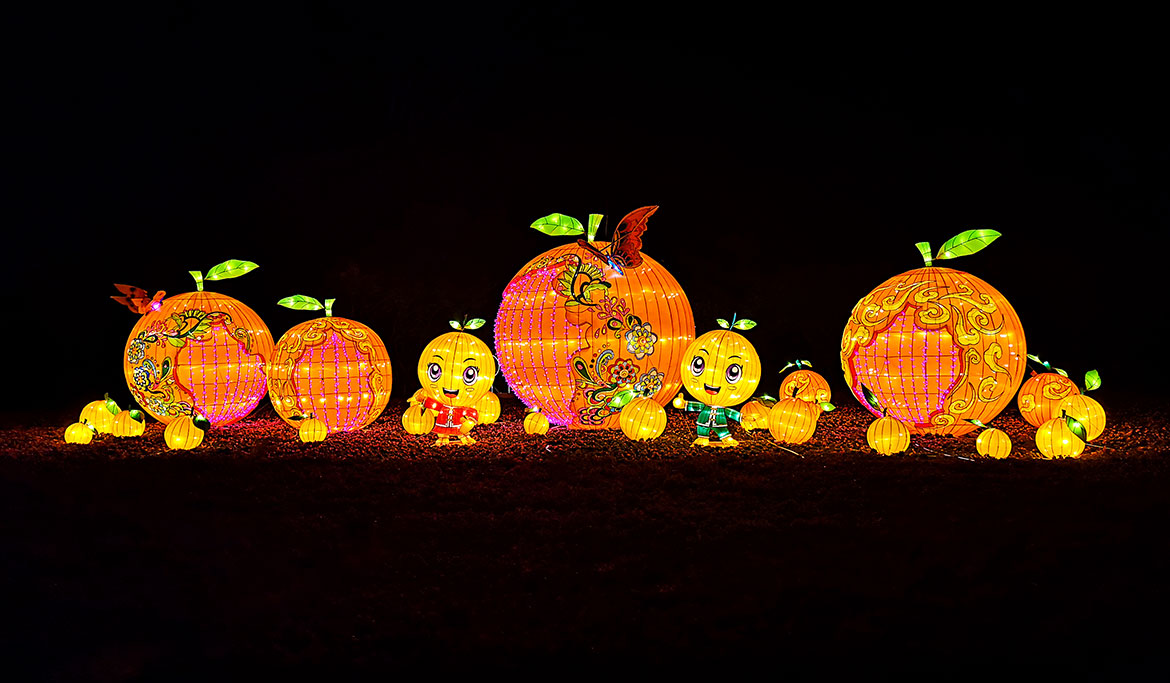 遠近聞名的廉江紅橙,是廉江特有的柑桔類特產,橙紅碩大的橙子是吉祥的象征;精致的彩燈造型設計,喜慶的色調,為人們送上吉祥的祝福:大吉大利。