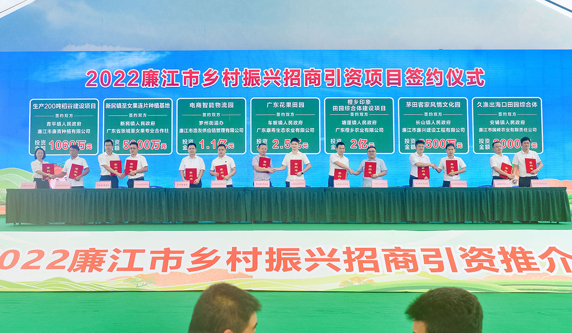 會上29個項目簽約,累計投資總額為27.02億元,包括工、農、旅等多個領域,廉江將以推介會為契機,做大做強紅橙、茶葉、荔枝、絲苗米、湛江雞五大特色農業產業,謀劃打造良垌、河唇、高橋等鄉村振興示范帶,促進一二三產業融合發展。