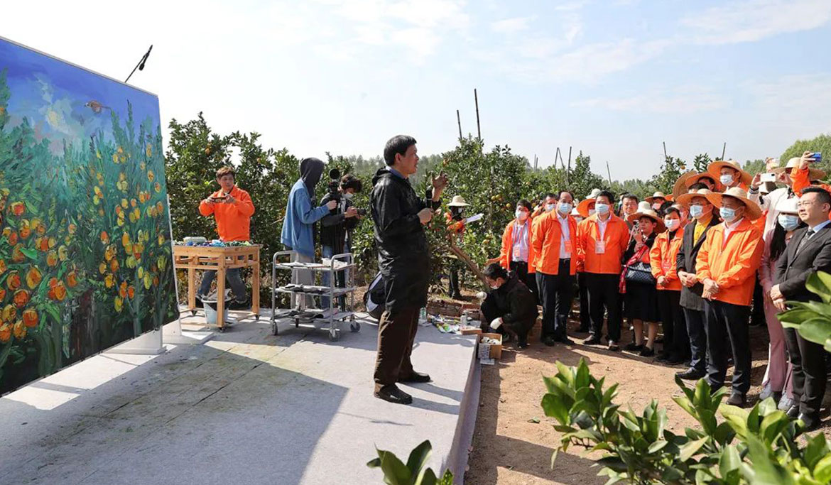“重彩繪橙園 文化興鄉村”周昌新重彩油畫廉江紅橙現場創作全球直播活動由眾利公司策劃執行
