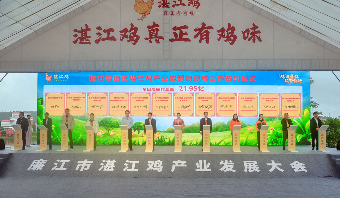 1月9日下午,以“‘雞’遇廉江 領(lǐng)勢(shì)前行”為主題的廉江市湛江雞產(chǎn)業(yè)發(fā)展大會(huì),在湛江市中塘鄉(xiāng)村旅游區(qū)舉行,爭(zhēng)取到2025年出欄9000萬羽以上,實(shí)現(xiàn)全產(chǎn)業(yè)鏈產(chǎn)值超100億元。據(jù)了解,經(jīng)銷商代表現(xiàn)場(chǎng)簽約項(xiàng)目,總額達(dá)21.95億元。
