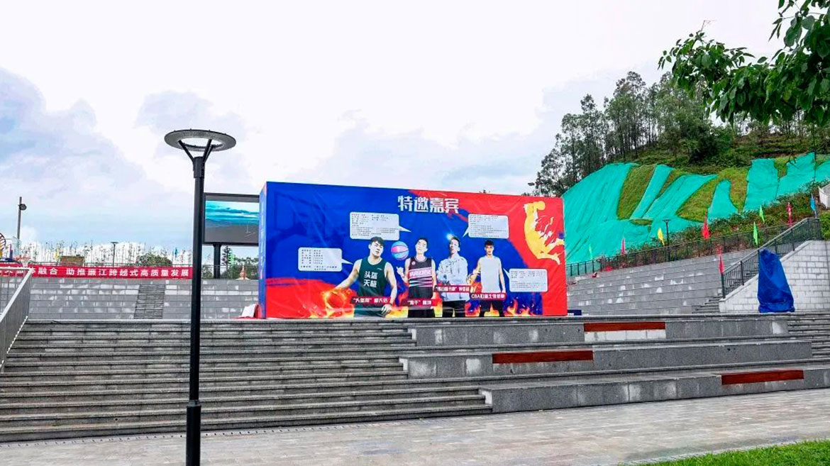 我司領導帶領團隊精心策劃,從籃球場布置、環境衛生、氛圍營造等多點精心部署;但受天氣影響,為把此次活動前期籌備工作做成、做好,我司團隊立即啟動第二預案,從露天籃球場轉戰到體育館內,我司團隊立即前往體育館做好場內布置,在時間緊、任務重的情況下完成了活動現場的布置工作,保障了活動的順利舉行。