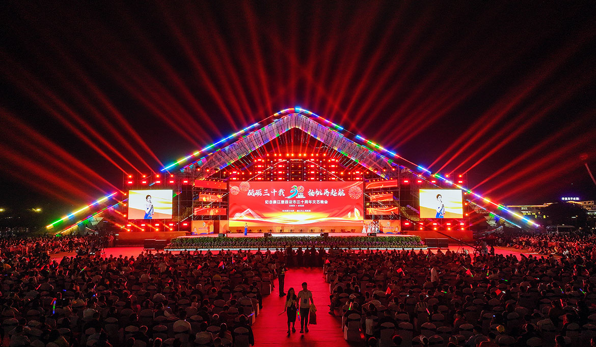 2023年12月10日于廉江市而言,是一個具有特殊意義的日子,撤縣設市三十年、砥礪前行的三十載,借著廉江家電博覽會暨紅橙文化節開幕,廉江將撤縣設市30周年文藝晚會地點設置在橙鄉地標——櫻花公園;以沉浸式歌舞表演,回顧三十載光輝歷程,展望廉江美好未來,為觀眾帶來不一樣的驚喜與感動,同時結合視頻直播的方式,讓場外觀眾獲得豐富新鮮的觀看體驗。