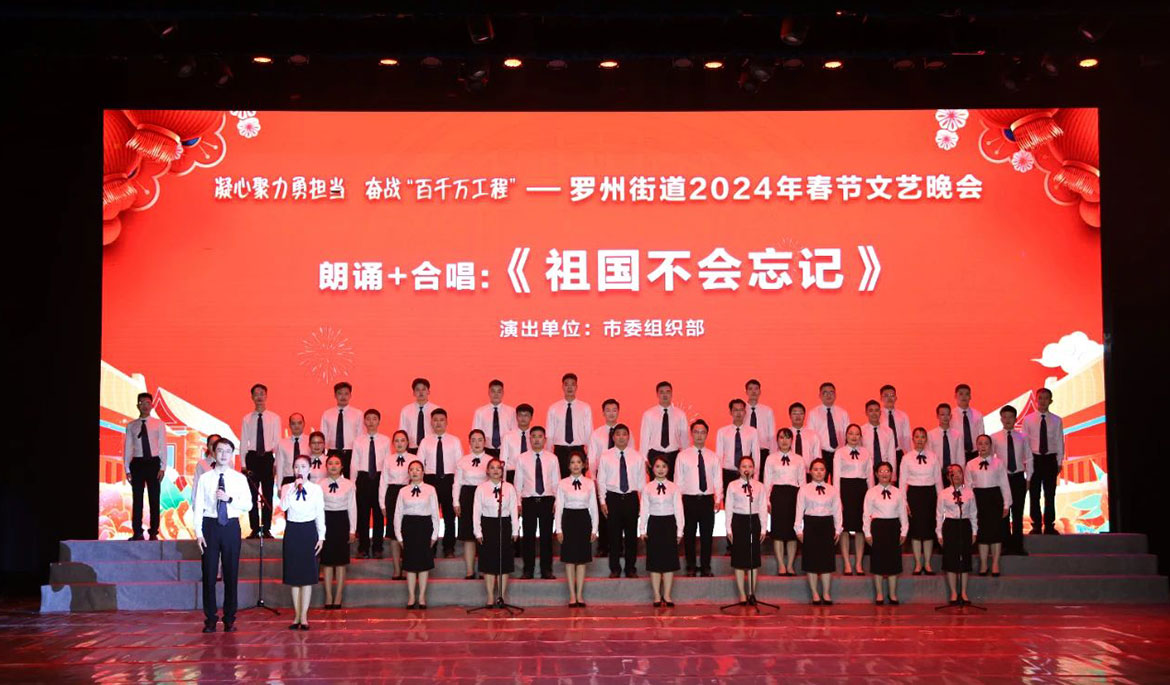 羅州街道春節文藝晚會由市“百千萬工程”指揮部辦公室、市總工會指導,羅州街道黨工委、羅州街道辦事處主辦,市文化館協辦,廣東眾利文化發展有限公司承辦。一共分為六個篇章,包括《爭先之態·推動商貿服務業提質》《比超之勢·推動工業提質》《攻堅之力·推動城市建設提質》《為民之心·推動公共服務提質》《聚力之行·推動社會治理提質》《創新之舉·推動黨建提質》。晚會主題鮮明,藝術形式豐富多彩,格調高雅,令人振奮,在大型歌舞《再一次出發》中拉開帷幕,朗誦《奮進羅州 筑夢未來》、小戲《茶香情》、快板《“百千萬工程”譜新篇》、小品《干部進網格》、廣場舞《橙鄉笠影》,一個個精彩的節目接連上演,現場高潮迭起,觀眾掌聲陣陣,充分展示羅州街道認真貫徹落實黨的二十大精神、習近平總書記視察廣東重要講話、重要指示精神,認真貫徹落實省委、湛江市委和廉江市委工作部署,在“百千萬工程”開局之年取得了良好工作成效,生動彰顯了羅州街道干部群眾勇于擔當、主動作為、競標爭先、比學趕超的精神風貌。