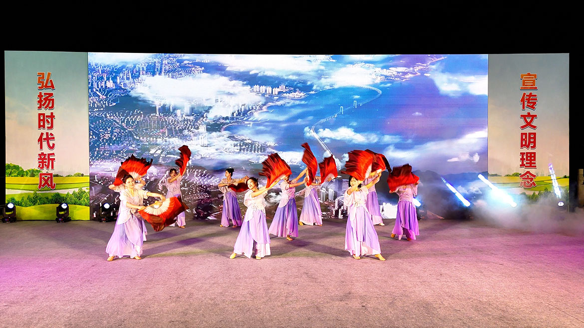 隨著啟動球的點亮,廉江、陸川“新民俗?新風尚”移風易俗新時代文明實踐共建活動正式拉開帷幕。悠揚動人的歌曲《文明之花》唱出了新時代的風貌;陸川縣帶來獨具地方特色的啀戲非遺表演《無“禮”取鬧》《山鄉(xiāng)蝶變》《風雪屋檐下》……以幽默詼諧的方式傳遞了文明新風;翩翩起舞的舞蹈《萬疆》展現(xiàn)了華夏大地的壯麗與輝煌;深情并茂的朗誦《九州江畔的文明交響》訴說著兩地文明的和諧共鳴……