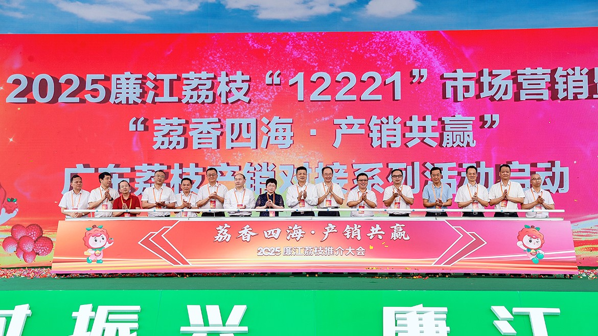 活動(dòng)由省農(nóng)業(yè)農(nóng)村廳、省商務(wù)廳指導(dǎo),廉江市政府、湛江市農(nóng)業(yè)農(nóng)村局、湛江市商務(wù)局聯(lián)合主辦。湛江市政協(xié)主席李多民,副市長何嘉旻,廣東省商務(wù)廳一級巡視員殷煥明,嶺南師范學(xué)院黨委副書記、校長陽愛民,廣東省外語藝術(shù)職業(yè)學(xué)院黨委書記馬栩生,廣東省委網(wǎng)信辦二級巡視員于萬東,廣東省統(tǒng)計(jì)局二級巡視員李兩聰,廣東省農(nóng)業(yè)農(nóng)村廳總農(nóng)藝師蔡立,湛江市委網(wǎng)信辦主任、市互聯(lián)網(wǎng)行業(yè)黨委書記汪良波,湛江市農(nóng)業(yè)農(nóng)村局局長莫植貴,湛江市商務(wù)局局長張佩,湛江市統(tǒng)計(jì)局局長甘強(qiáng),湛江市供銷社主任葉文新,國家統(tǒng)計(jì)局湛江調(diào)查隊(duì)隊(duì)長、一級調(diào)研員許喬峰,廉江市委書記曾平治,市委副書記、市長柯俊,市人大常委會黨組書記、主任陳煒飛等領(lǐng)導(dǎo)出席活動(dòng),并共同推桿啟動(dòng)2025廉江荔枝“12221”市場營銷暨“荔香四海·產(chǎn)銷共贏”廣東荔枝產(chǎn)銷對接系列活動(dòng)。