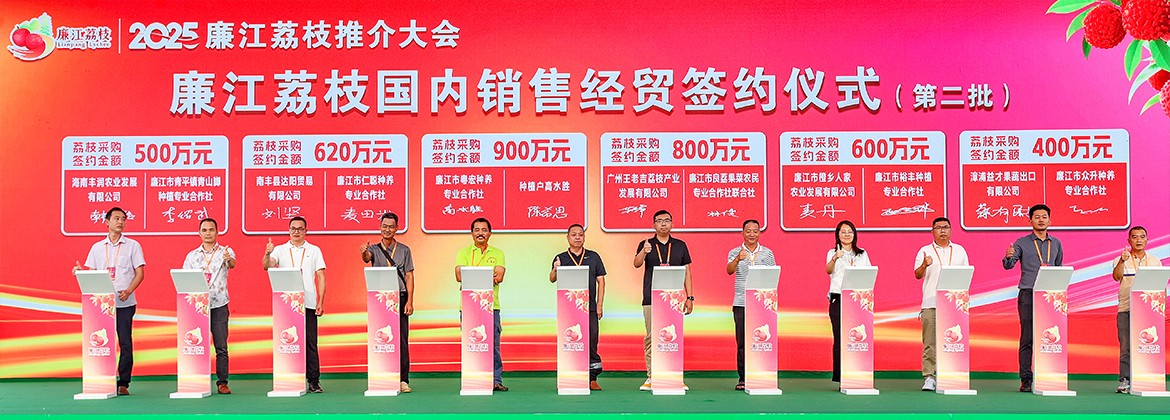 廉江荔枝采購簽約儀式,共有18家國內(nèi)外銷售經(jīng)貿(mào)企業(yè)集中簽約,現(xiàn)場簽約金額3.062億元。